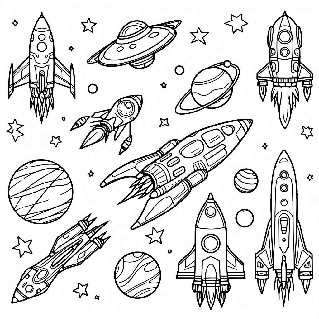 ציור של חלליות לצביעה, איור של חלליות להדפסה לצביעה לילדים