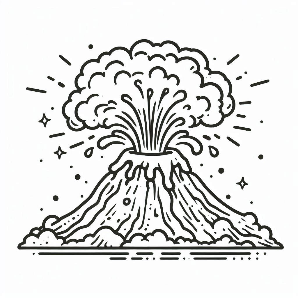 הר געש מתפרץ לצביעה - דף צביעה של הר געש מתפרץ להדפסה, ציור של הר געש מתפרץ לצביעה בחינם