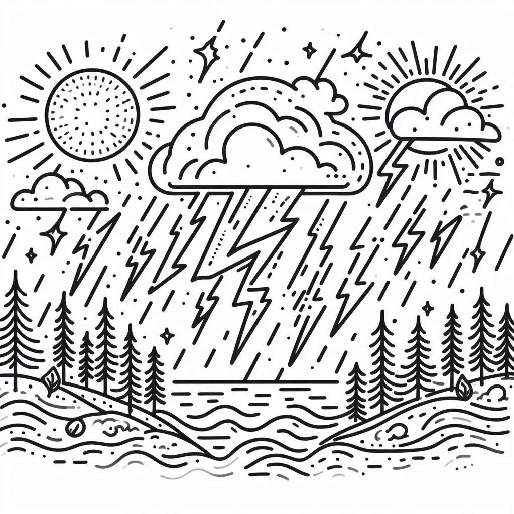 ציור של סופת רעמים לצביעה, איור של סופת רעמים להדפסה לצביעה לילדים
