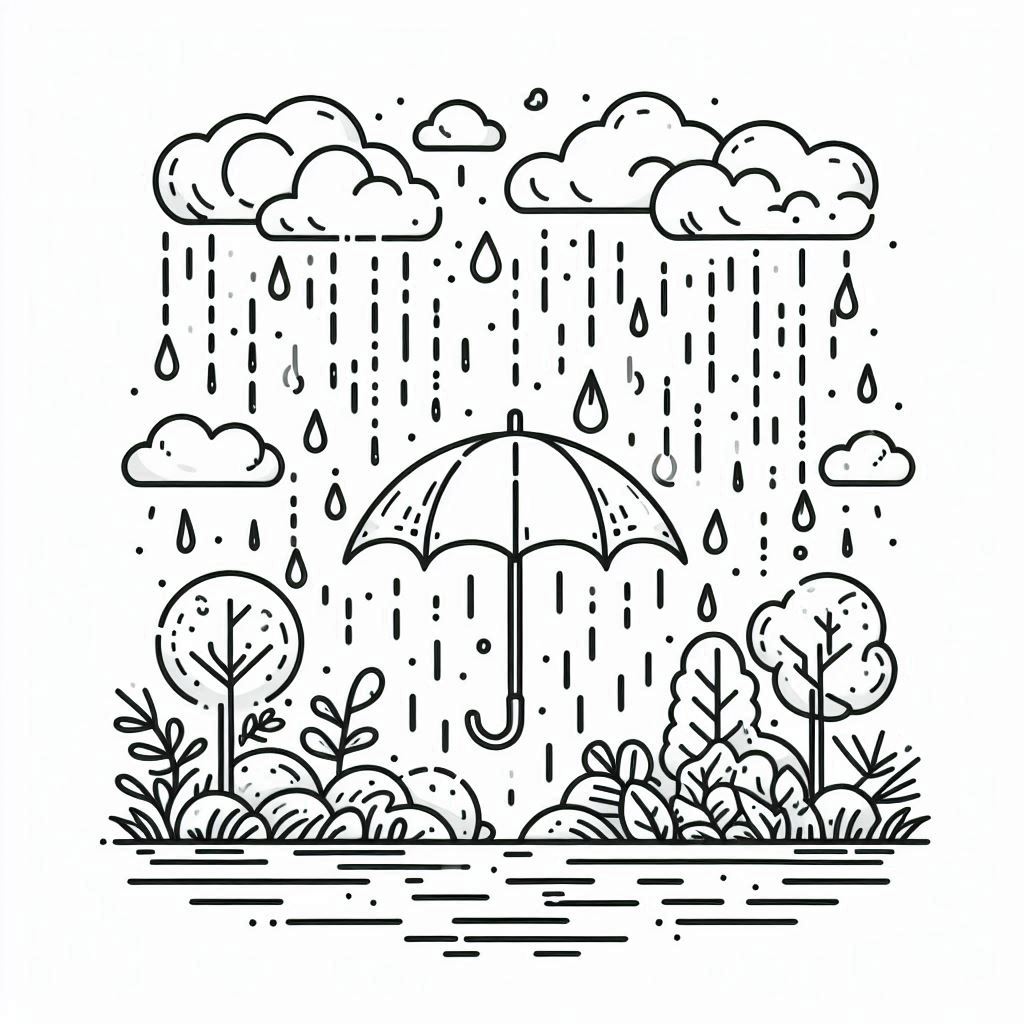 תמונה של גשם בשחור לבן להדפסה בחינם. דף עבודה לצביעה של גשם להורדה או שמירה במחשב.