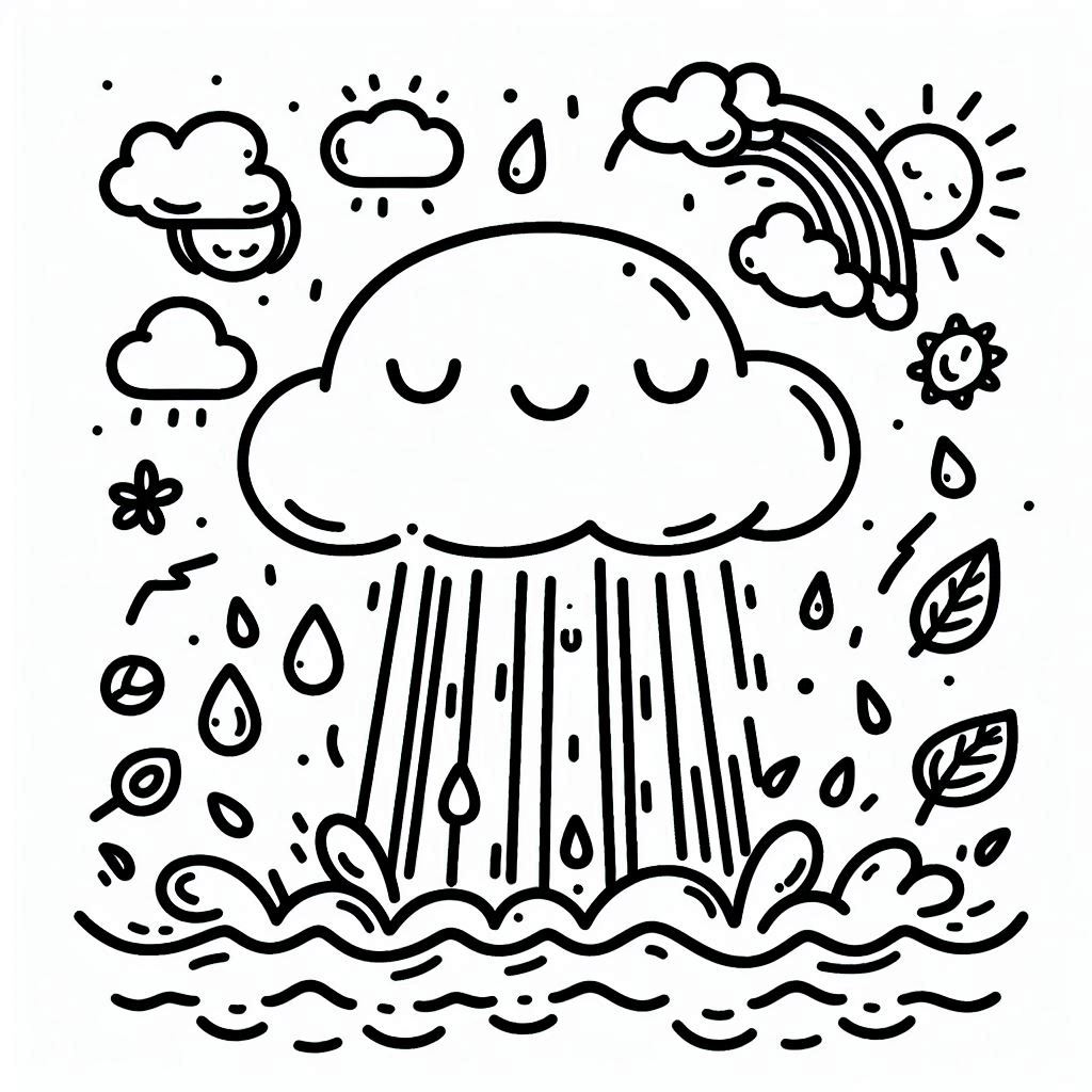 דף צביעה של ענן גשם להדפסה בחינם