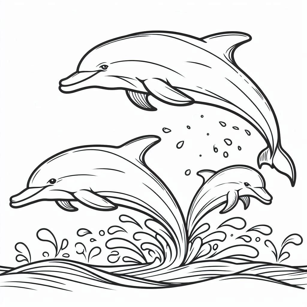 דף צביעה של דולפינים קופצים להדפסה או להורדה בחינם, למחשב או לטלפון (אפשר להדפיס גם מהטלפון) ציור של דולפינים קופצים לצביעה, איור של דולפינים קופצים להדפסה לצביעה לילדים