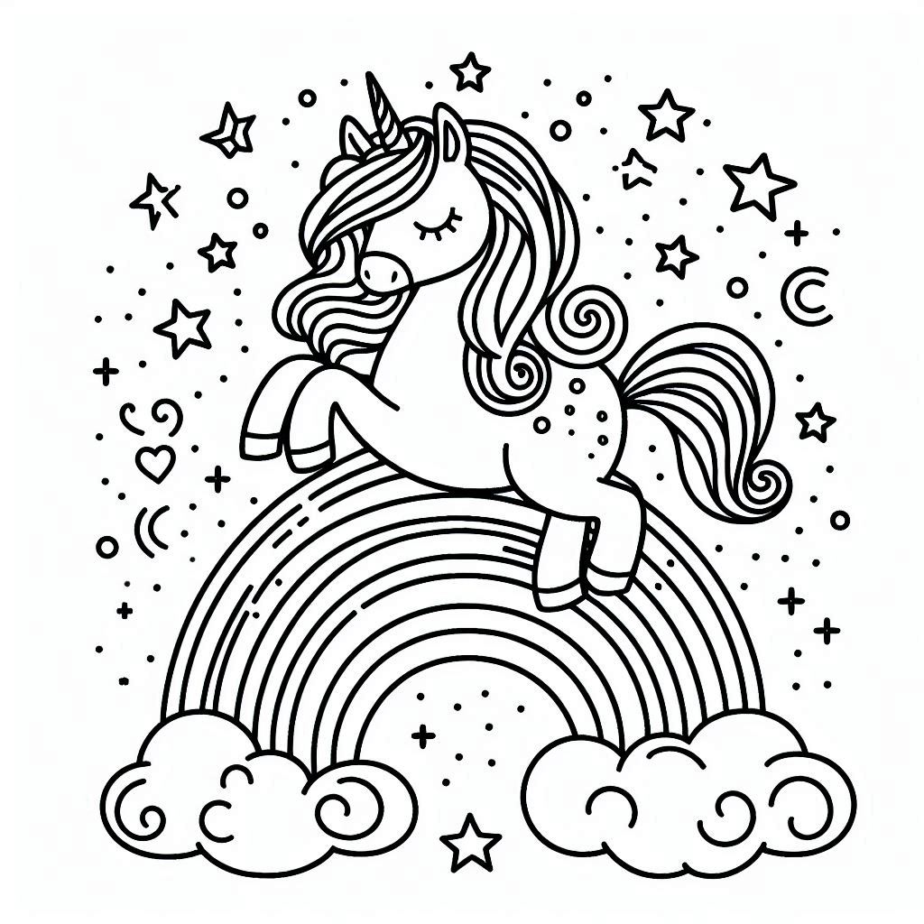 דף צביעה תמונה של חד קרן וקשת לצביעה בחינם להדפסה או צביעה אונליין