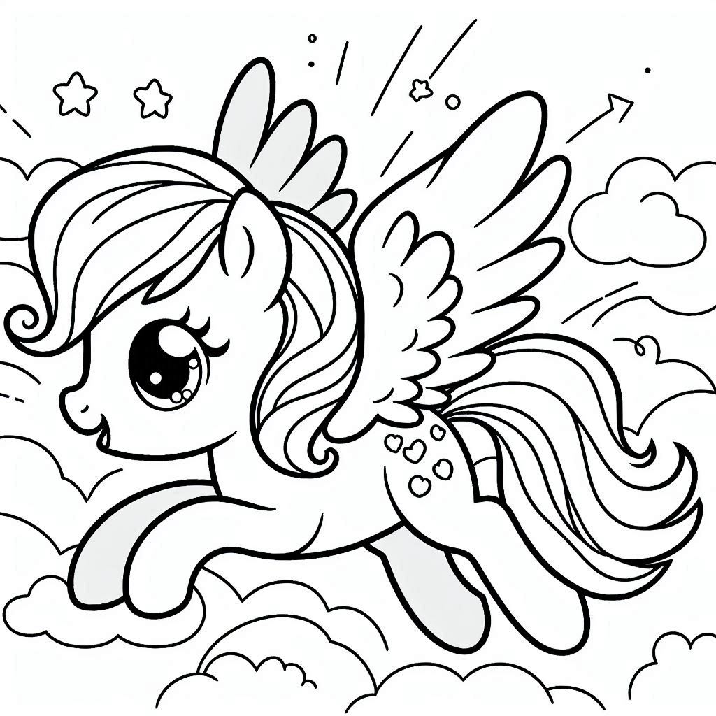 דף צביעה תמונה של סוס פוני בעננים לצביעה בחינם להדפסה או צביעה אונליין