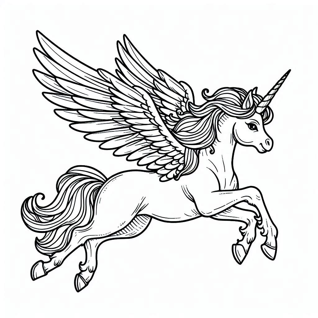 דף צביעה תמונה של חד קרן מעופף יפה לצביעה בחינם להדפסה או צביעה אונליין
