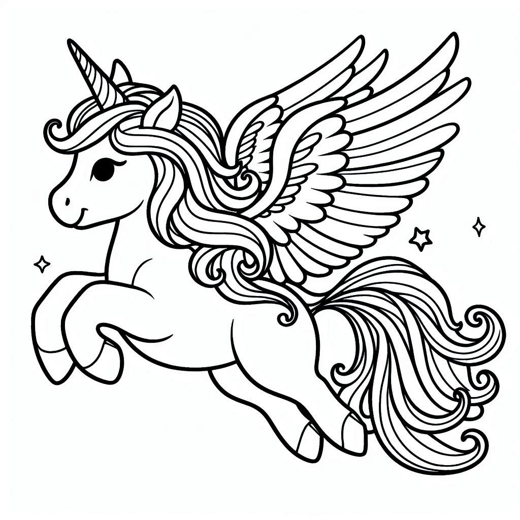 דף צביעה להדפסה או להורדה חינם של חד קרן מצויר חמוד