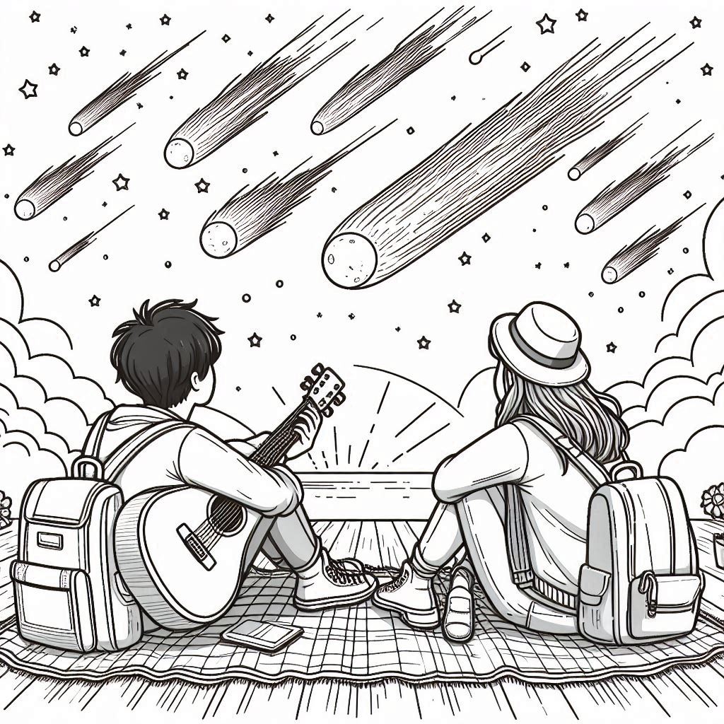 ציור של מטר מטאורים לצביעה, איור של מטר מטאורים להדפסה לצביעה לילדים