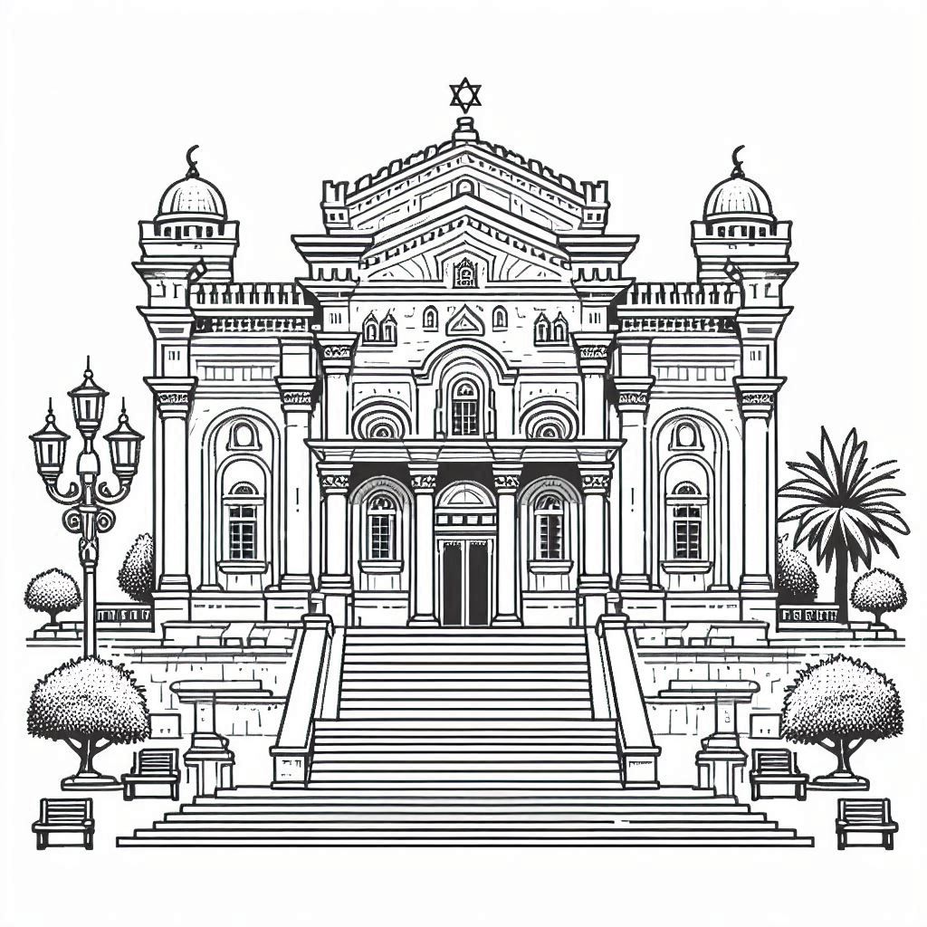 בית כנסת גדול לצביעה - דף צביעה של בית כנסת גדול להדפסה, ציור של בית כנסת גדול לצביעה בחינם