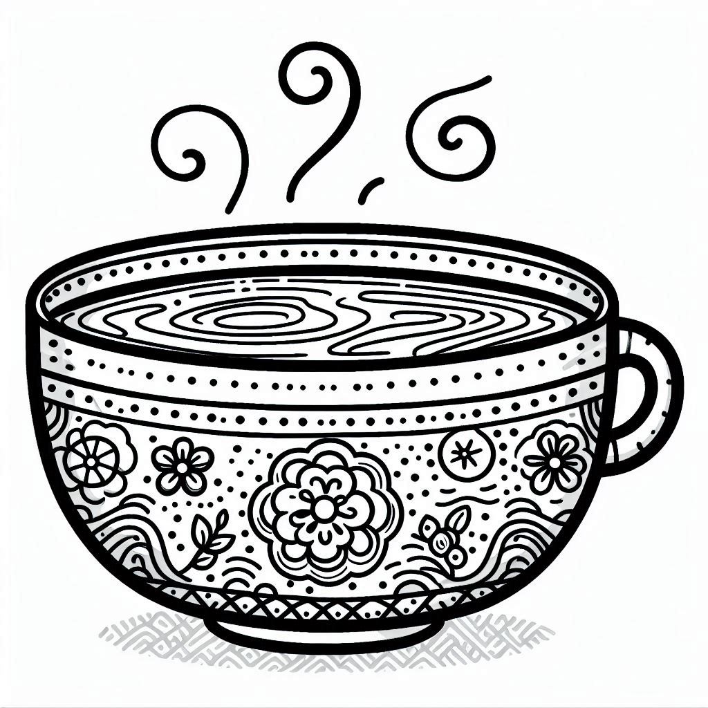 דף קערת מרק איור לצביעה , קערת מרק איור להדפסה לצביעה, מתאים לדף בגודל A4 להדפסה בחינם