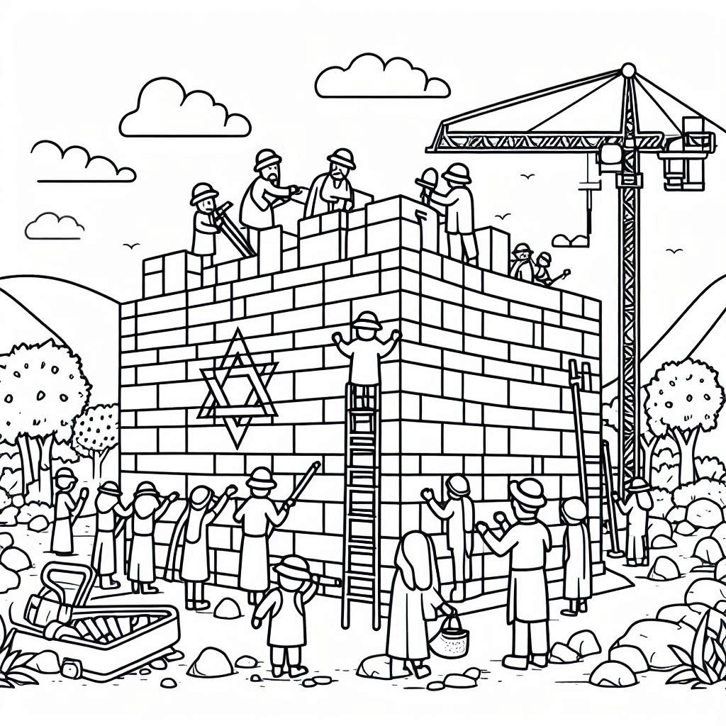 דף צביעה של בונים את ירושלים להדפסה בחינם