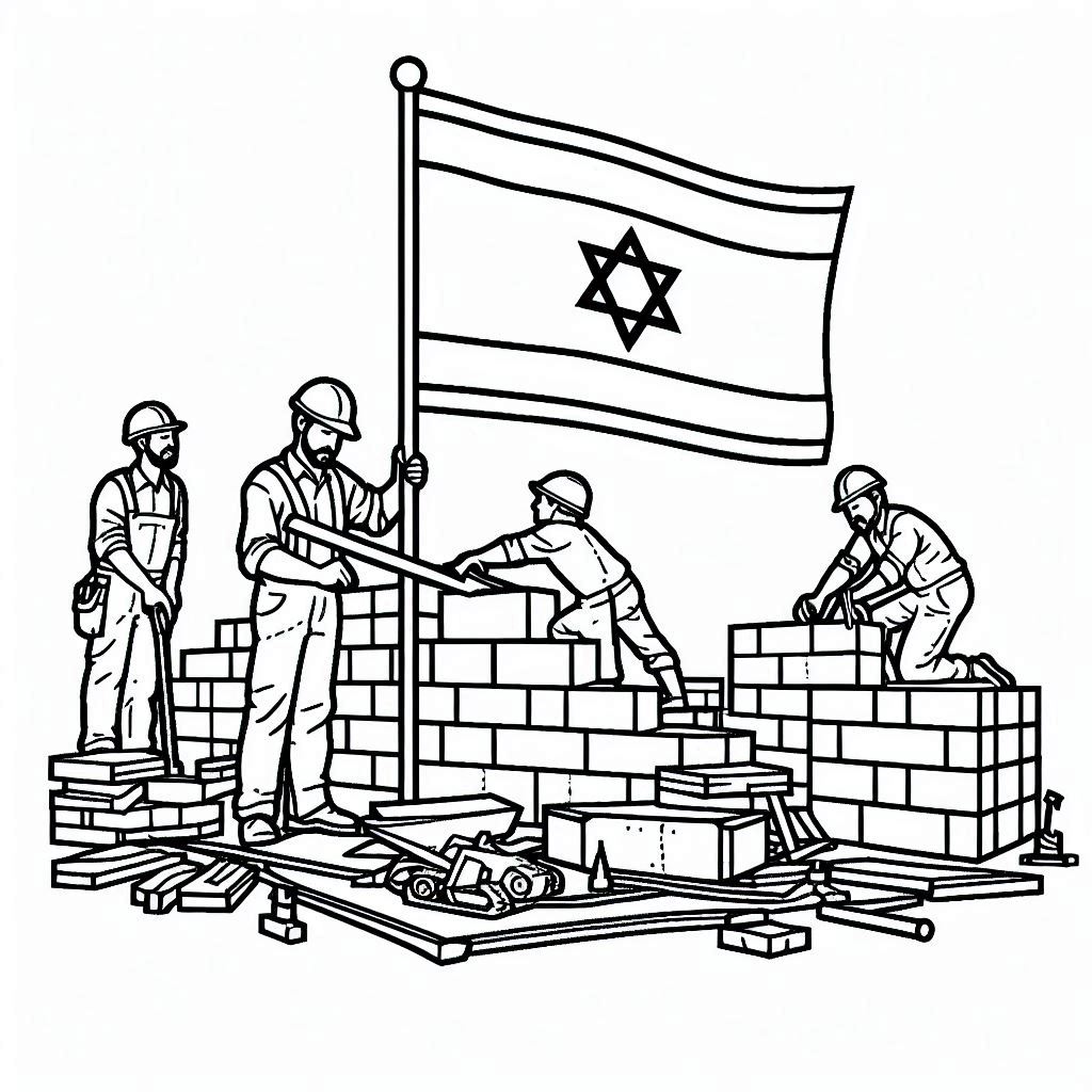 בונים את ישראל לצביעה - דף צביעה של בונים את ישראל להדפסה, ציור של בונים את ישראל לצביעה בחינם
