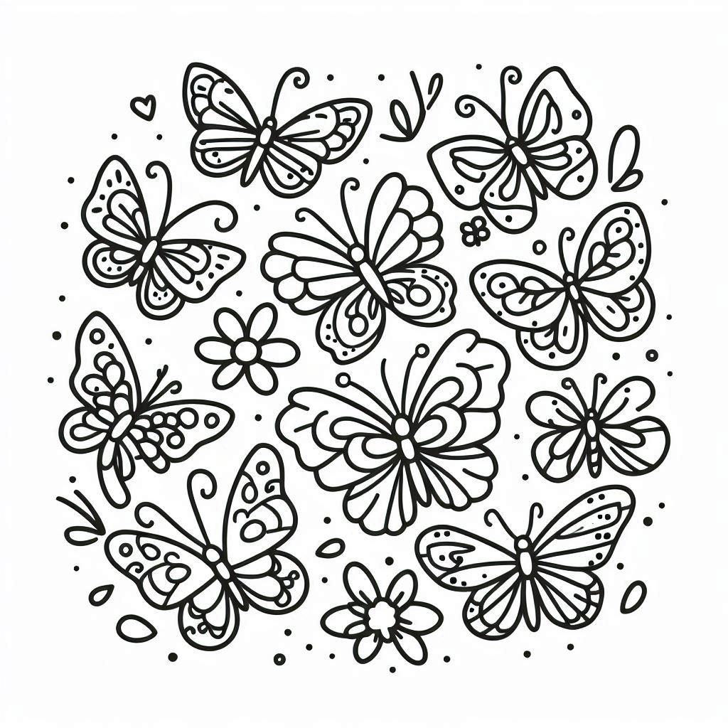 ציור של פרפרים לצביעה, איור של פרפרים להדפסה לצביעה לילדים