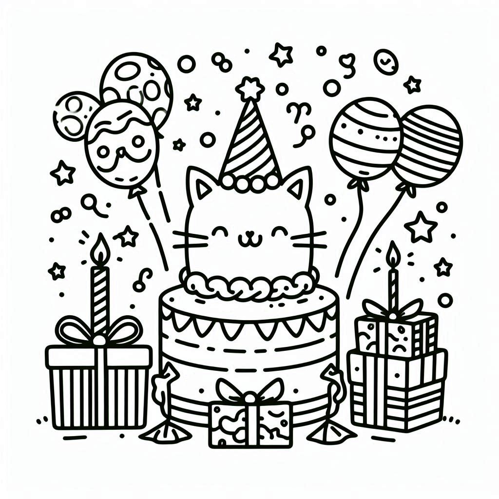 תמונה של יומולדת בשחור לבן להדפסה בחינם. דף עבודה לצביעה של יומולדת להורדה או שמירה במחשב.
