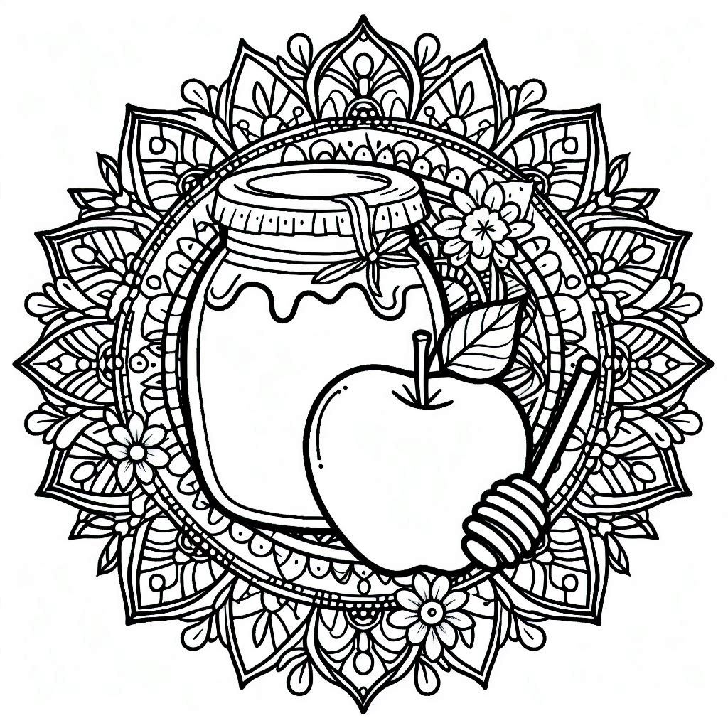 דף צביעה של תפוח בדבש מנדלה להדפסה או להורדה בחינם, למחשב או לטלפון (אפשר להדפיס גם מהטלפון)