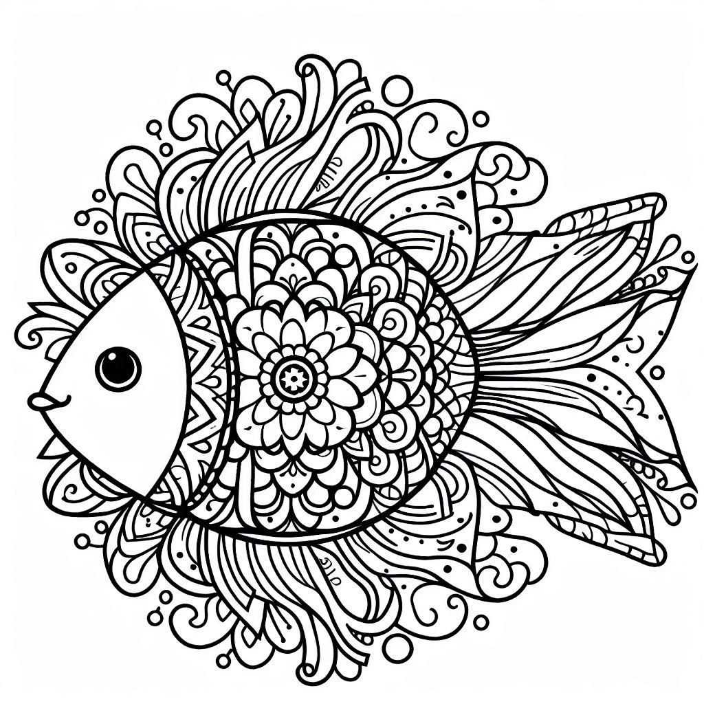 דף צביעה של מנדלה דג - דף צביעה של מנדלה דג להדפסה, ציור של מנדלה דג לצביעה בחינם