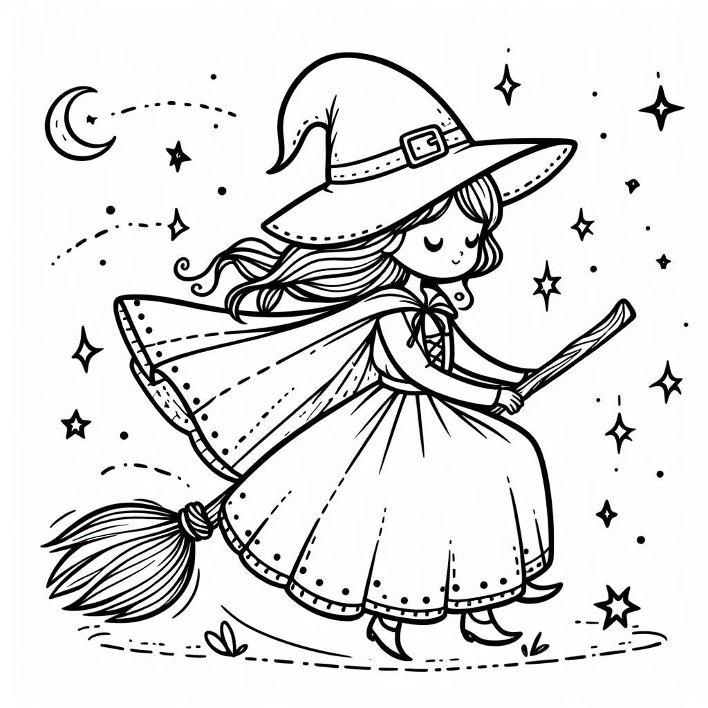 ציור של מכשפה לצביעה, איור של מכשפה להדפסה לצביעה לילדים