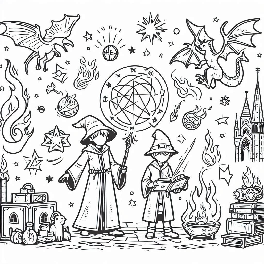 ציור של כשפים לצביעה, איור של כשפים להדפסה לצביעה לילדים