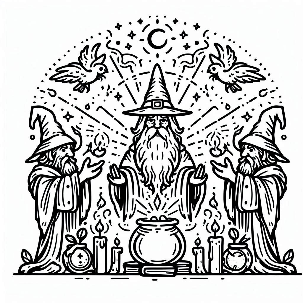 דף צביעה של כשפים וקוסמים להדפסה בחינם