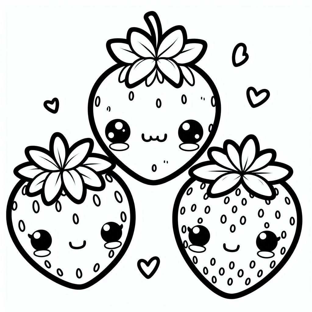 ציור של תותים לצביעה, איור של תותים להדפסה לצביעה לילדים