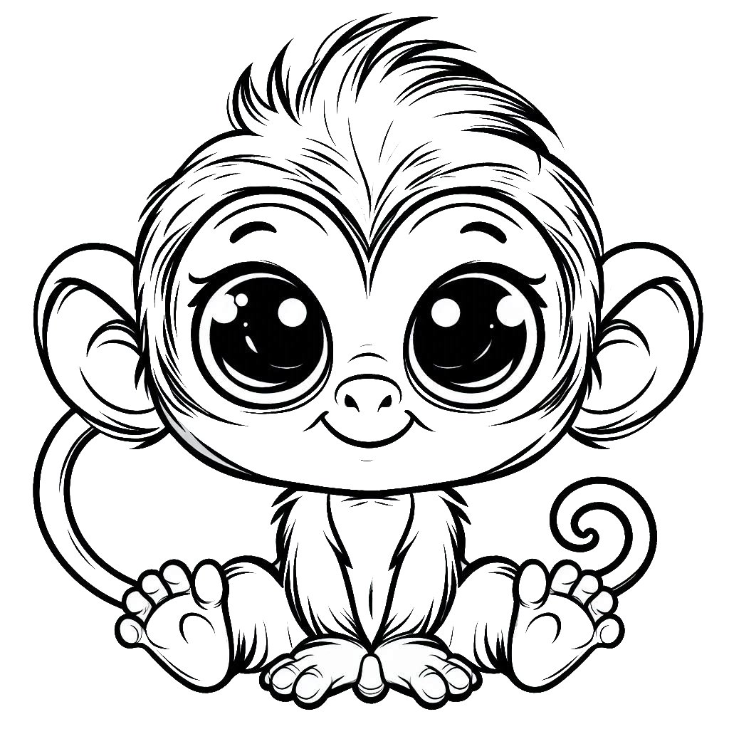 קוף עם עיניים גדולות לצביעה - דף צביעה של קוף עם עיניים גדולות להדפסה בחינם, קוף עם עיניים גדולות, קוף סופר חמוד לצביעה חינם, דף צביעה ממש חמוד של קוף לצביעה או להדפסה לילדים בחינם