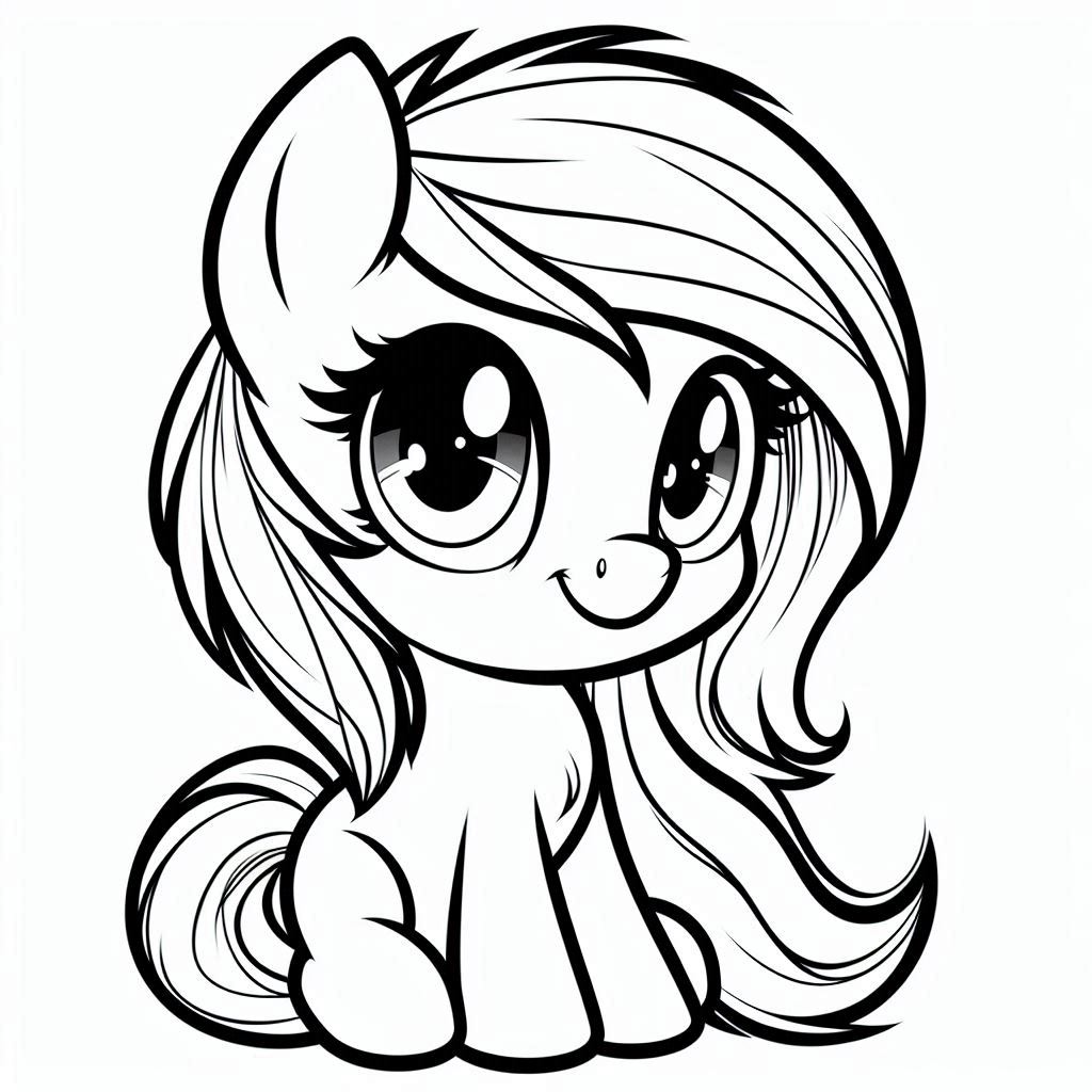 דף צביעה תמונה של סוס פוני עם עיניים גדולות לצביעה בחינם להדפסה או צביעה אונליין