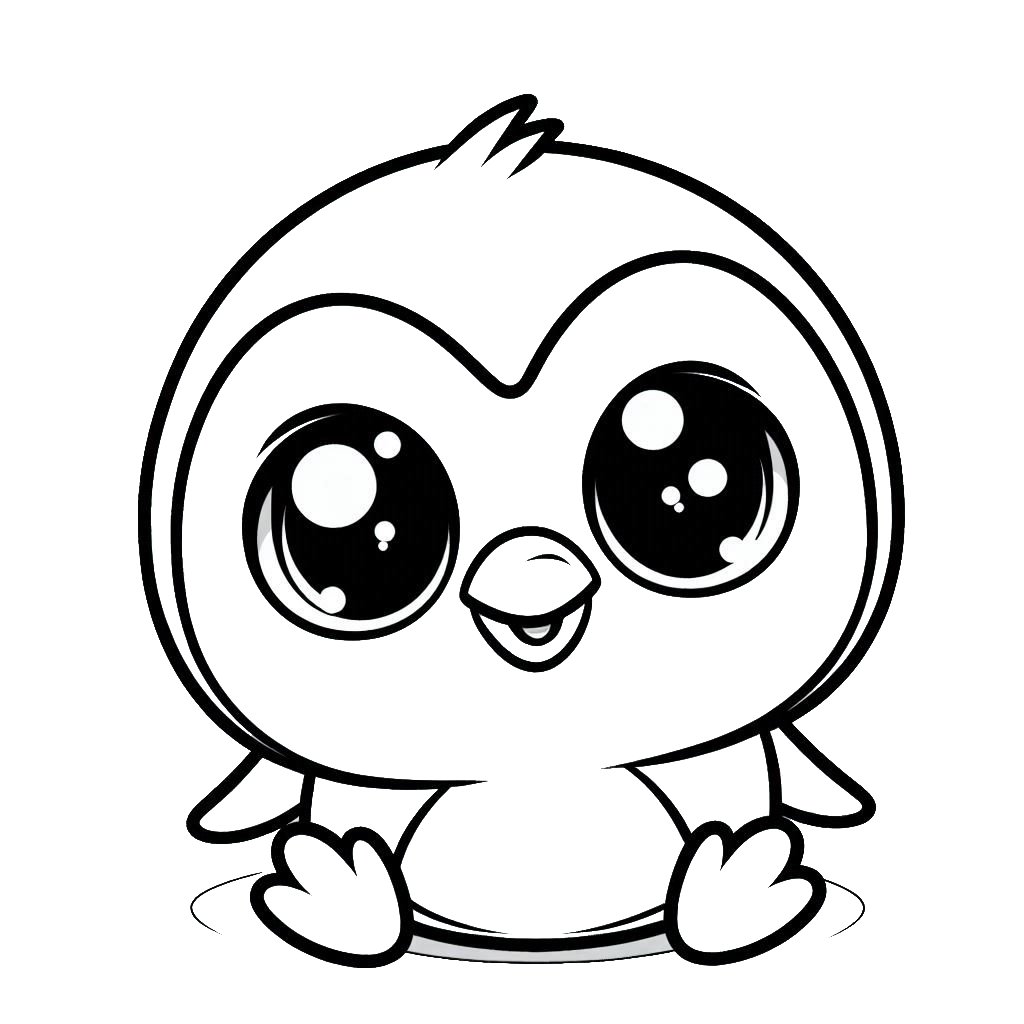 דף צביעה תמונה של פינגווין עם עיניים גדולות לצביעה בחינם להדפסה או צביעה אונליין