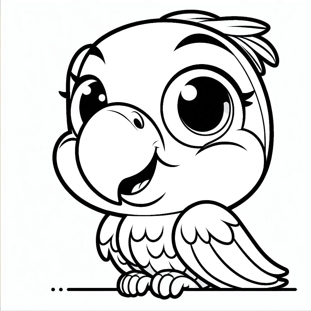דף צביעה תמונה של תוכי עם עיניים גדולות לצביעה בחינם להדפסה או צביעה אונליין