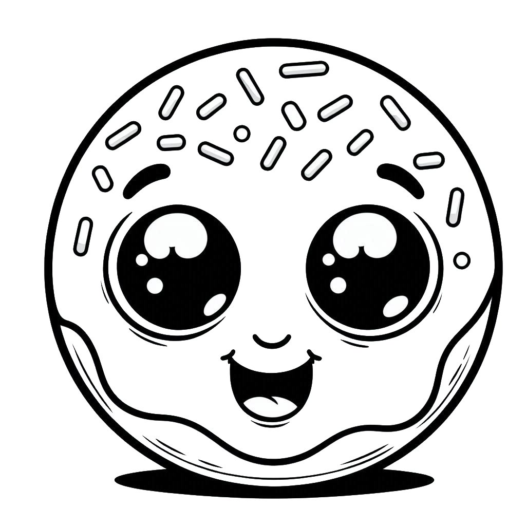 דף צביעה תמונה של סופגנייה עם עיניים גדולות לצביעה בחינם להדפסה או צביעה אונליין