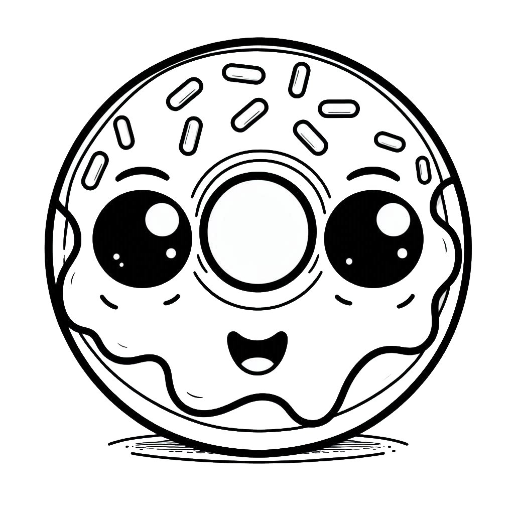 דף צביעה תמונה של דונאטס עם עיניים גדולות לצביעה בחינם להדפסה או צביעה אונליין