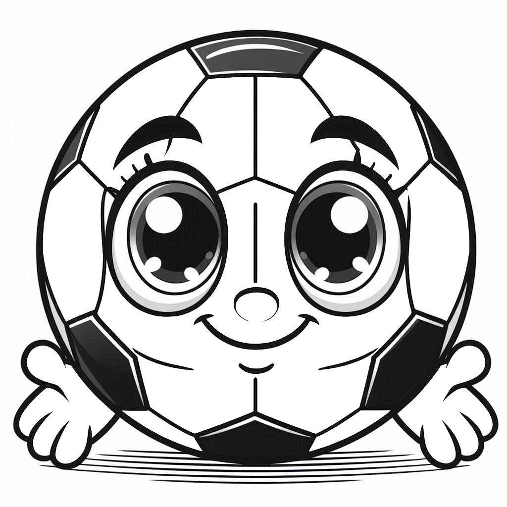 דף צביעה תמונה של כדורגל עם עיניים גדולות לצביעה בחינם להדפסה או צביעה אונליין
