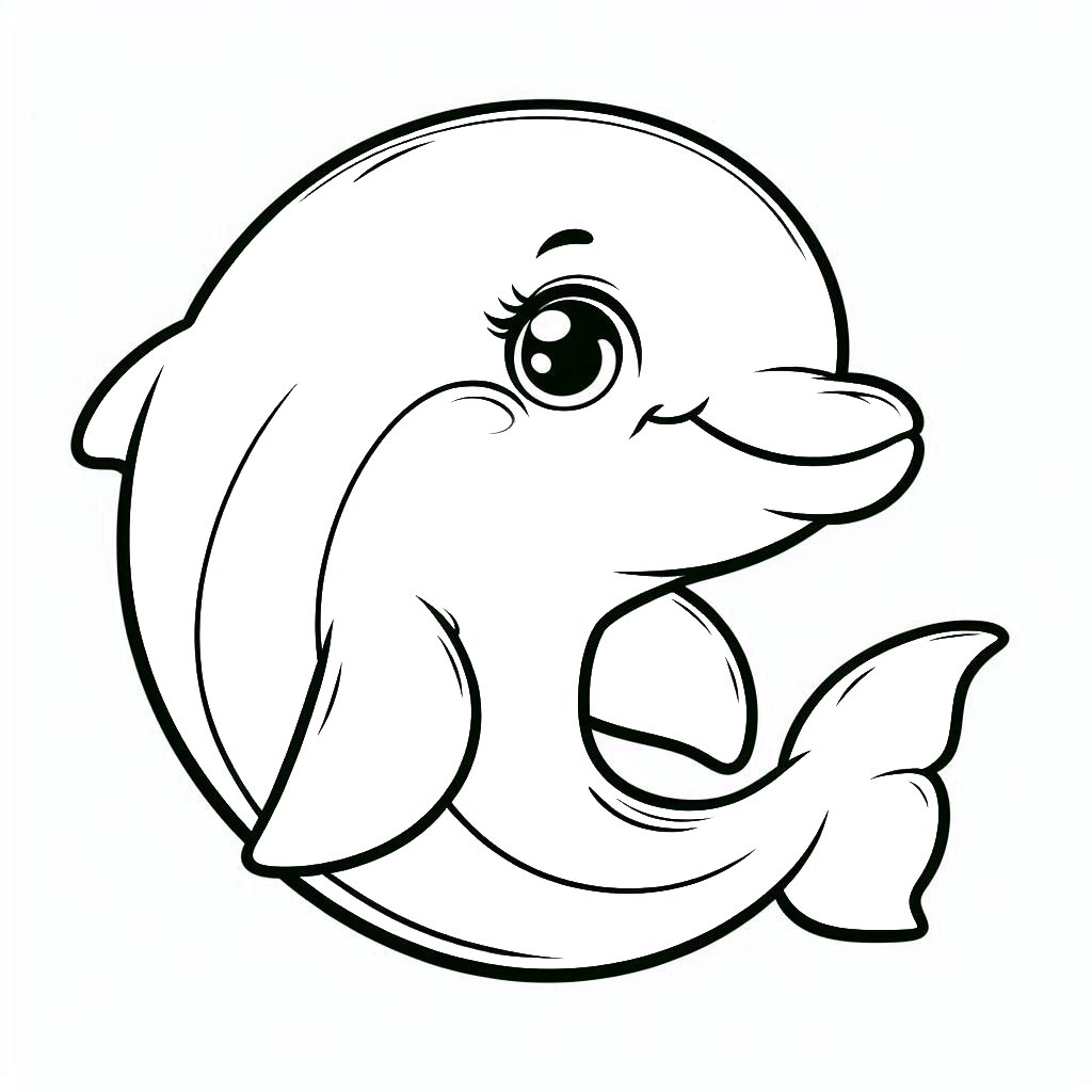 דף צביעה תמונה של דולפין עם עיניים גדולות לצביעה בחינם להדפסה או צביעה אונליין