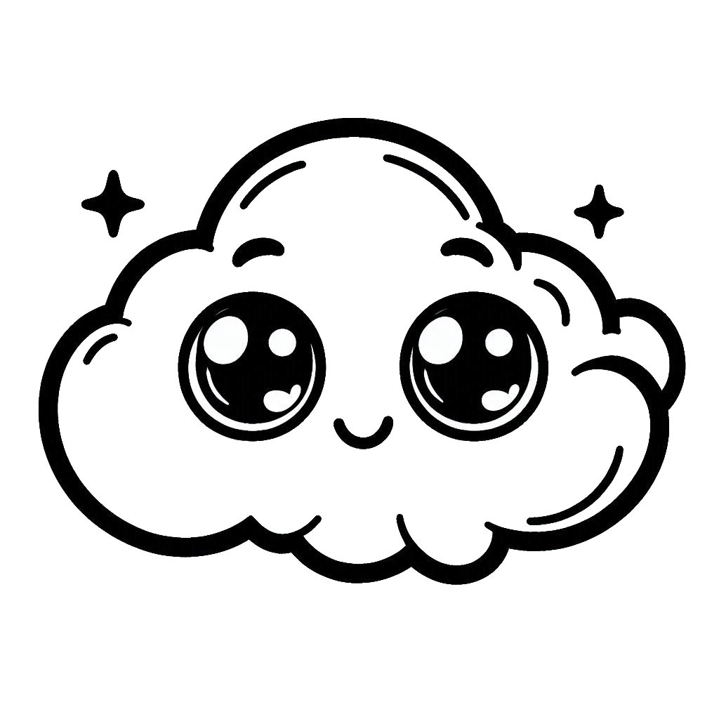 דף צביעה תמונה של ענן עם עיניים גדולות לצביעה בחינם להדפסה או צביעה אונליין