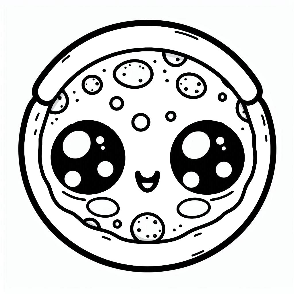 דף צביעה תמונה של פיצה שלמה עם עיניים גדולות לצביעה בחינם להדפסה או צביעה אונליין