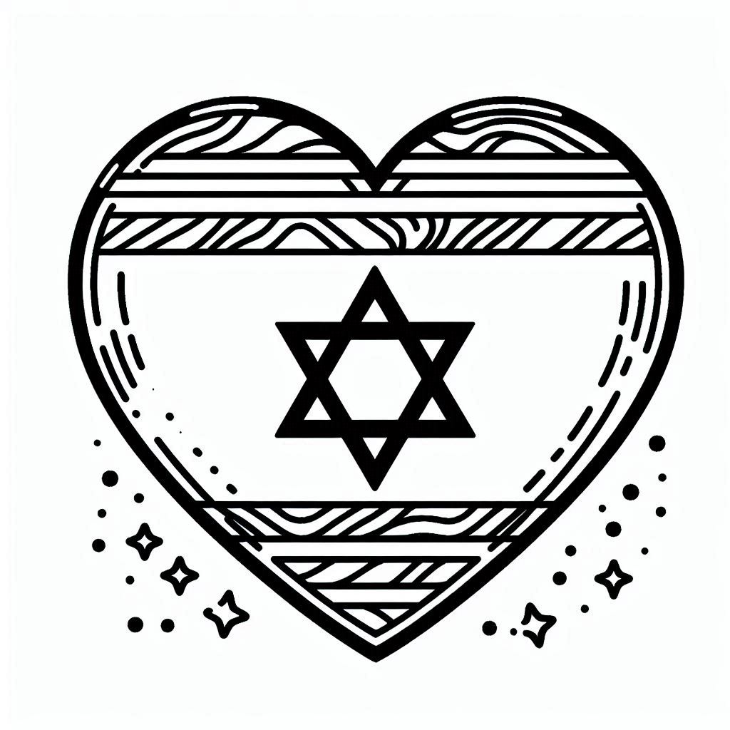 ציור של לב עם דגל ישראל לצביעה, איור של לב עם דגל ישראל להדפסה לצביעה לילדים