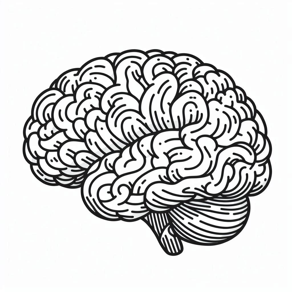 ציור של מוח לצביעה, איור של מוח להדפסה לצביעה לילדים