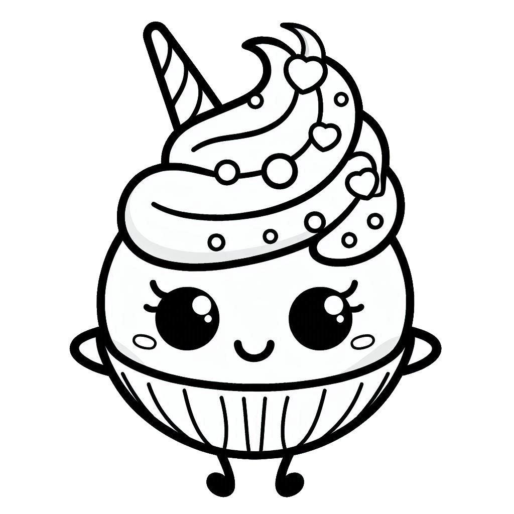 דף צביעה של עוגת חד קרן חמודה להדפסה בחינם