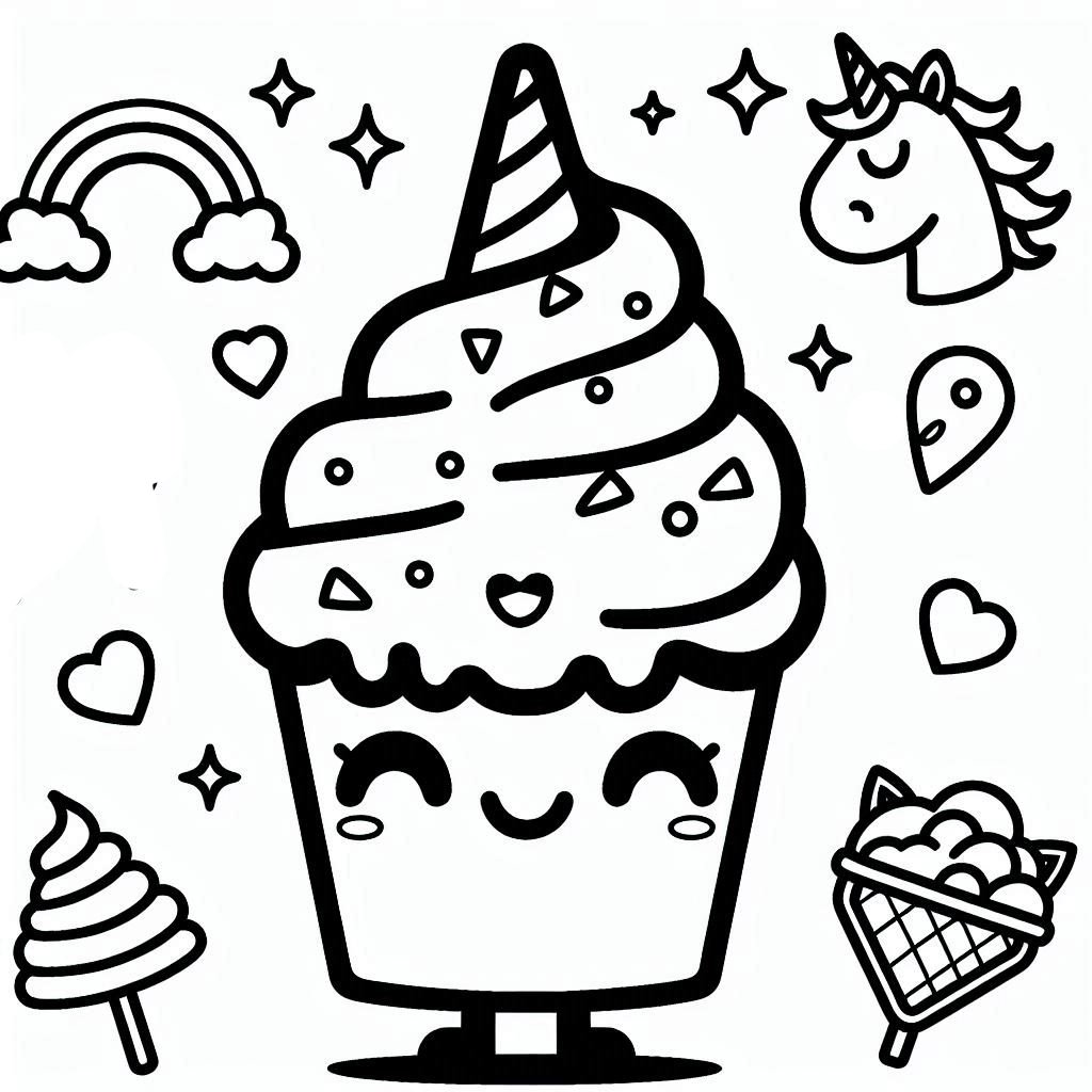 דף צביעה תמונה של גלידה חד קרן לצביעה בחינם להדפסה או צביעה אונליין