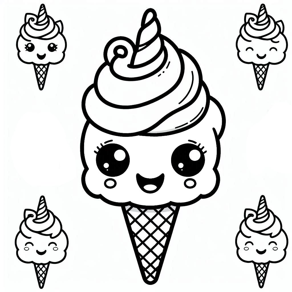 דף צביעה תמונה של גלידה עם קרן לצביעה בחינם להדפסה או צביעה אונליין