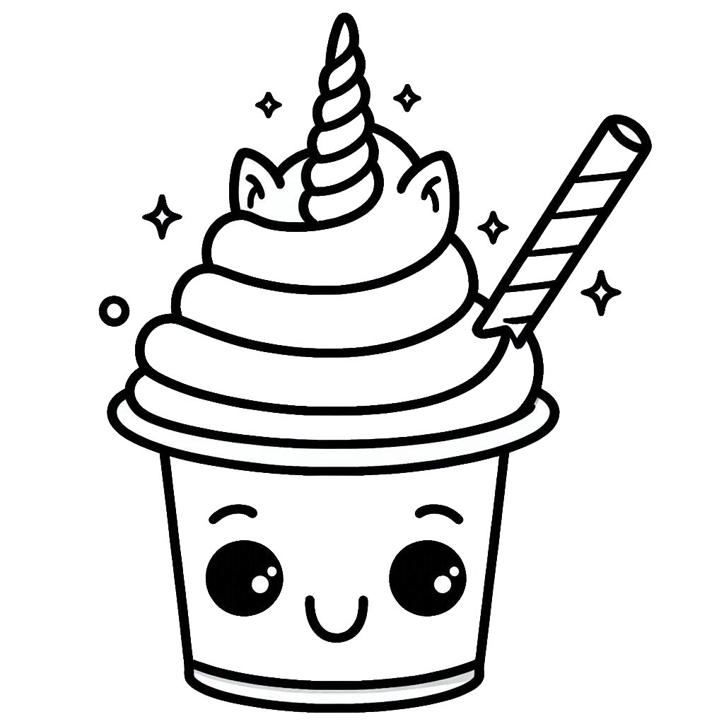 דף צביעה תמונה של כוס גלידה חד קרן לצביעה בחינם להדפסה או צביעה אונליין