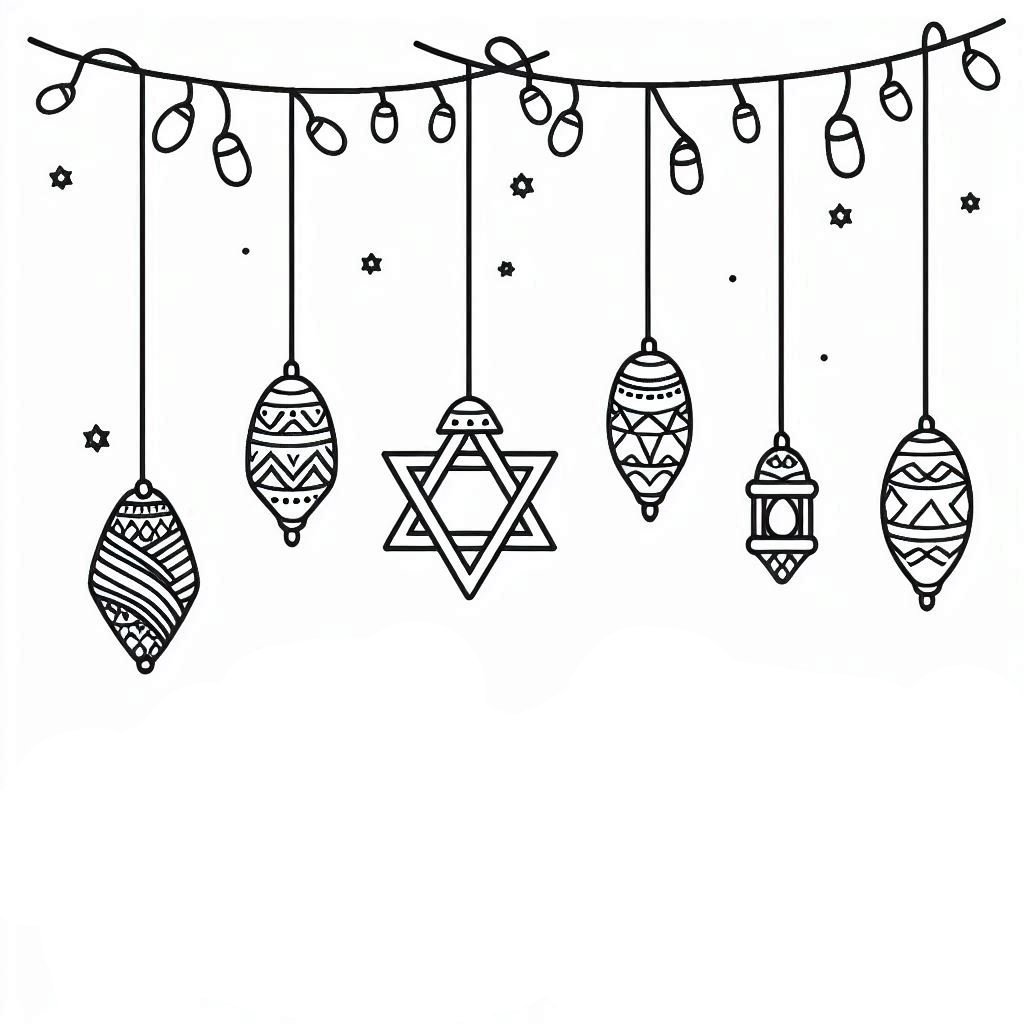 דף צביעה להדפסה או להורדה חינם של קישוטים לסוכה