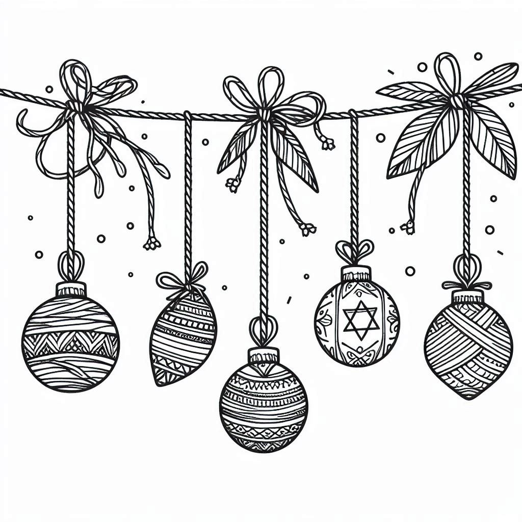דף צביעה להדפסה או להורדה חינם של קישוטים לסוכות