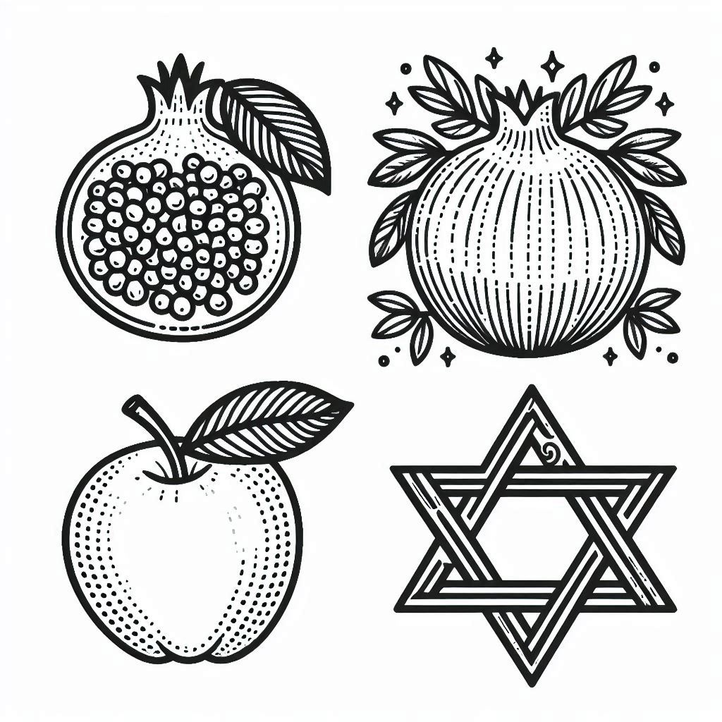 תמונה של קישוטי מגן דוד לסוכה בשחור לבן להדפסה בחינם. דף עבודה לצביעה של קישוטי מגן דוד לסוכה להורדה או שמירה במחשב.