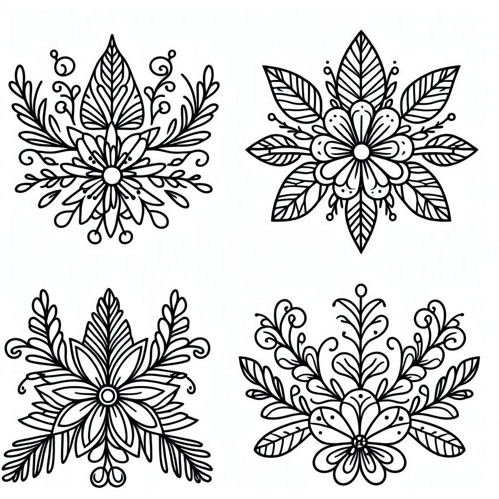 דף קישוטי פרחים לסוכה לצביעה , קישוטי פרחים לסוכה להדפסה לצביעה, מתאים לדף בגודל A4 להדפסה בחינם