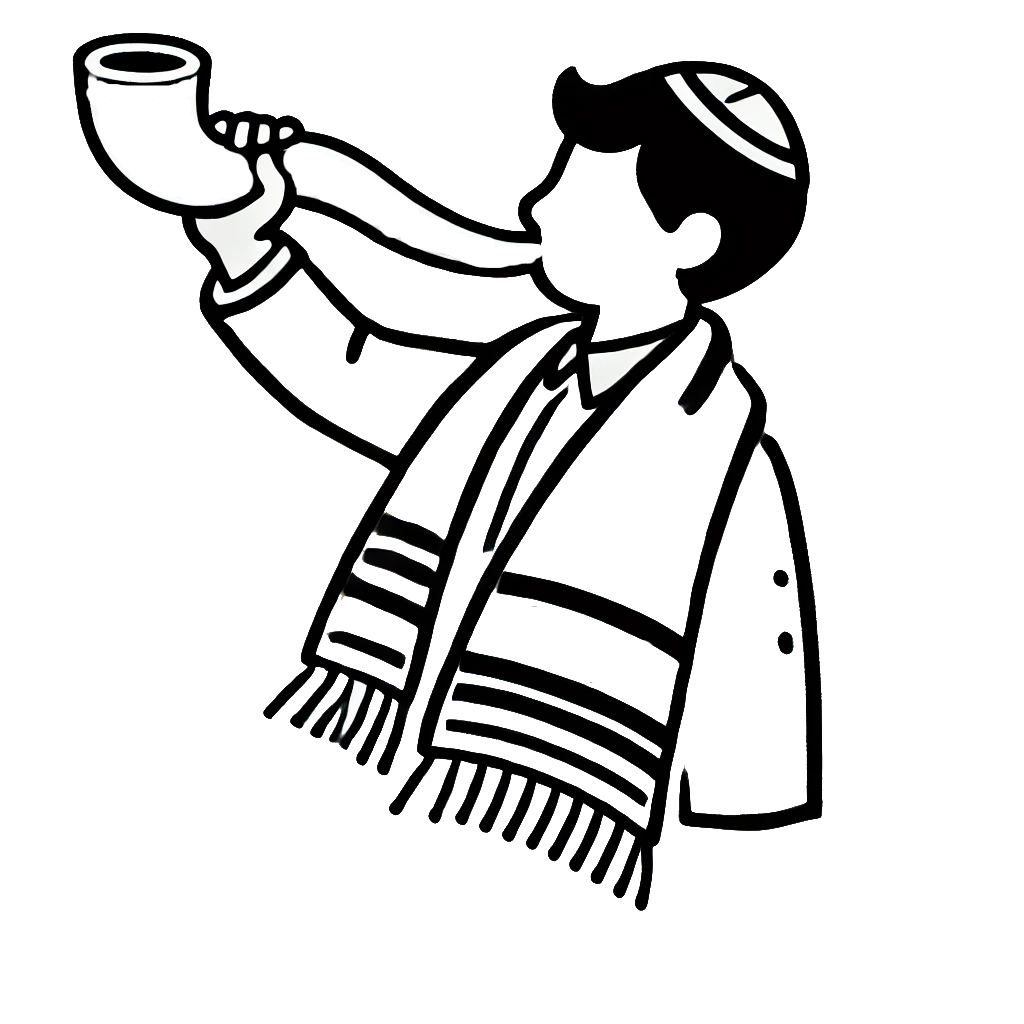 ילד עם שופר | ציור של שופר | תקיעת שופר |