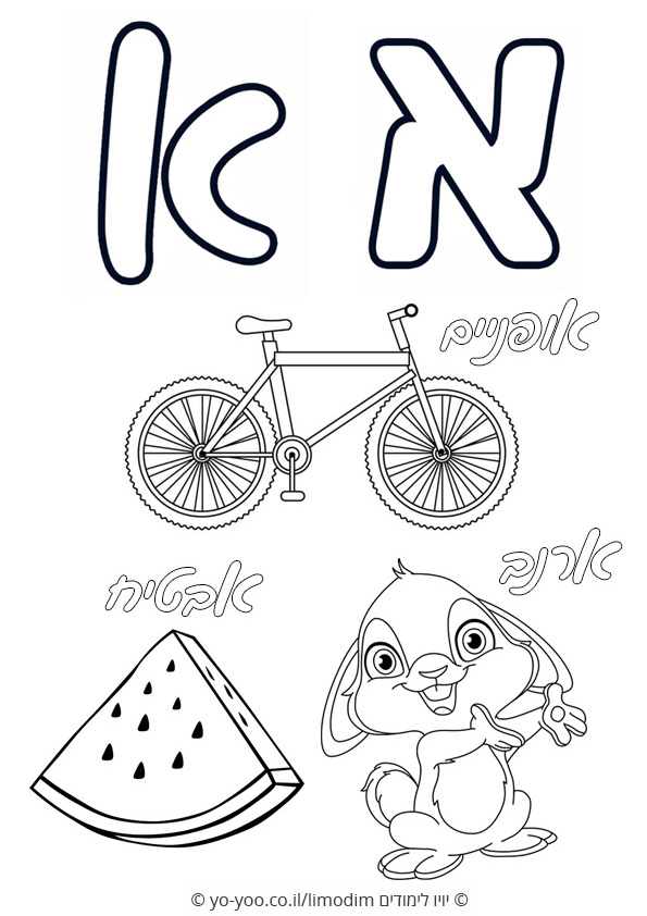 דף צביעה של האות א דפוס וכתב יד להדפסה בחינם