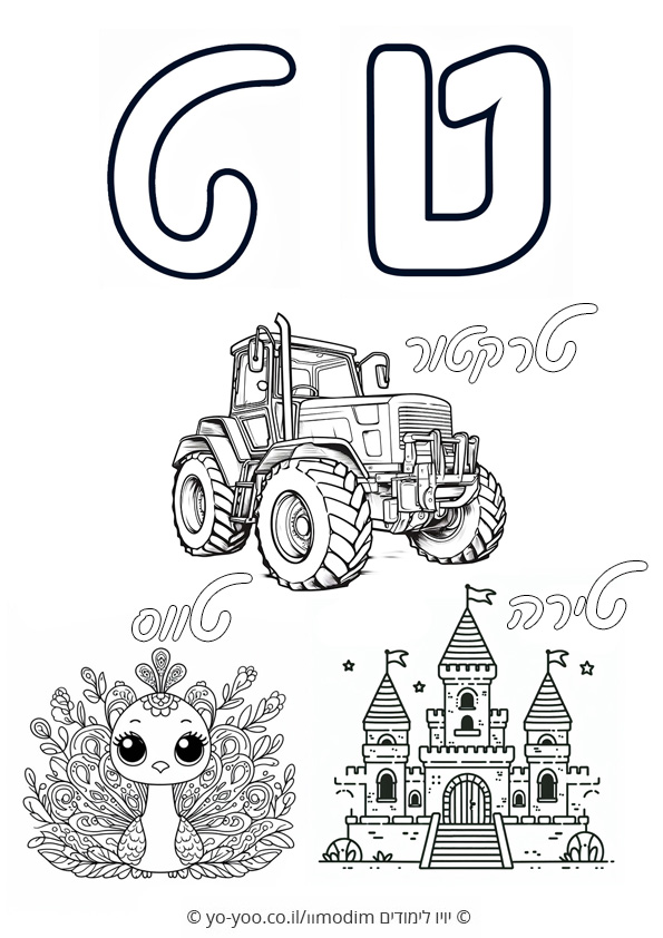 דף צביעה של האות ט דפוס וכתב יד להדפסה בחינם