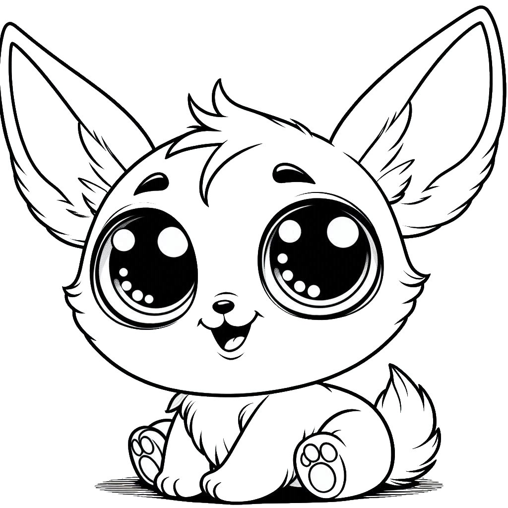 דף צביעה להדפסה או להורדה חינם של יצור חמוד עיניים גדולות