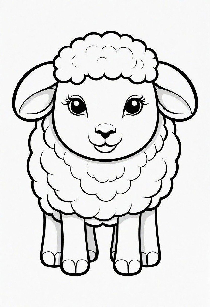 ציור של כבשה לצביעה, איור של כבשה להדפסה לצביעה לילדים