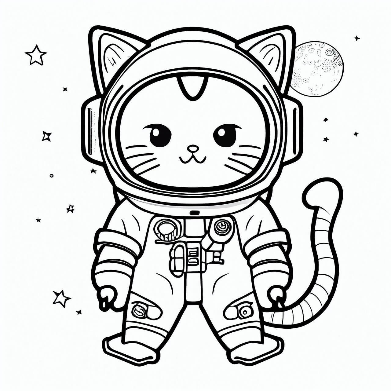 דף צביעה להדפסה או להורדה חינם של חתול אסטרונאוט