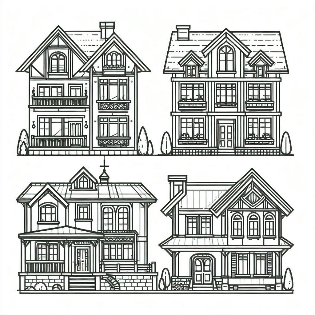 ציור של בתים לצביעה, איור של בתים להדפסה לצביעה לילדים